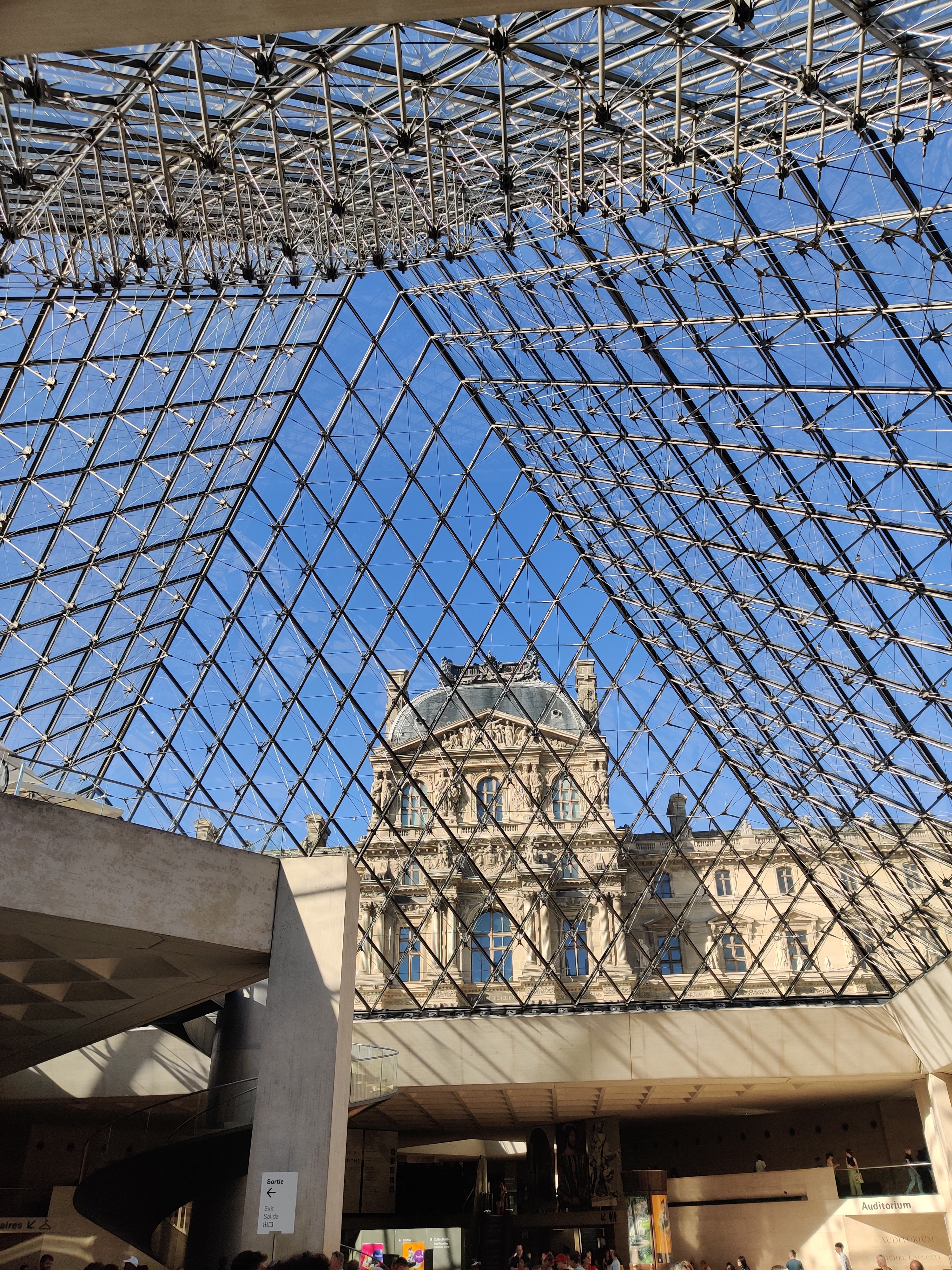 First picture is the Eiffel tower. Second picture is in the Louvre Museum.